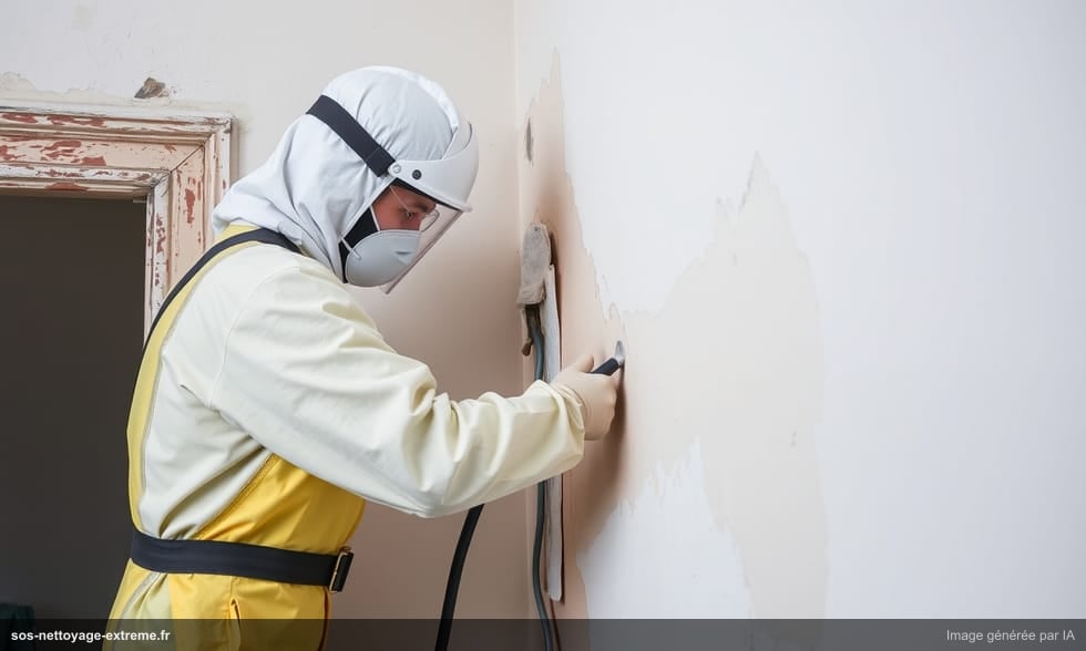 Des millions de logements construits avant 1949 en France comportent encore des peintures contenant du plomb, notamment du carbonate de plomb blanc (céruse) et du minium de plomb. Ces pigments étaient massivement utilisés avant leur interdiction progressive, l’arrêté du 28 octobre 1948 ayant mis fin à l’emploi du carbonate de plomb et du sulfate de plomb dans les travaux de peinture intérieure. Le risque posé par ces peintures est largement sous-estimé lors des opérations de débarras et de travaux : lorsque la surface est en bon état, le risque d’exposition est faible. Mais dès qu’on ponce, gratte, frappe ou perfore des murs ou menuiseries en peinture plombée, des poussières de plomb se libèrent dans l’air ambiant, exposant immédiatement les travailleurs et les occupants présents à un risque d’intoxication grave.